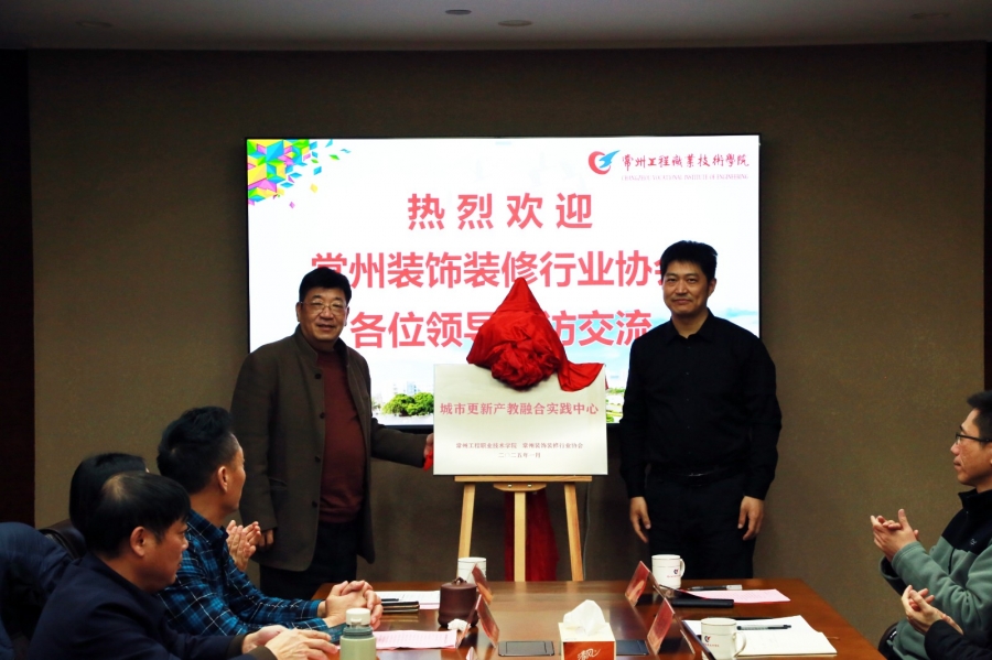 1月14日下午,城市更新产教融合实践中心揭牌仪式在第三会议室成功举行。常州装饰装修行业协会会长冯仲贤、监事长吴义峰、常务副会长徐鲁平、副会长沈月国、秘书长周澄、副秘书长张文清,公司党委委员、副董事长黄一波,党委委员、纪委书记徐黎明,产教融合办公室主任裴忠贵、1xBET经理段笔耕,以及1xBET教师代表参加会议。会议由段笔耕主持。