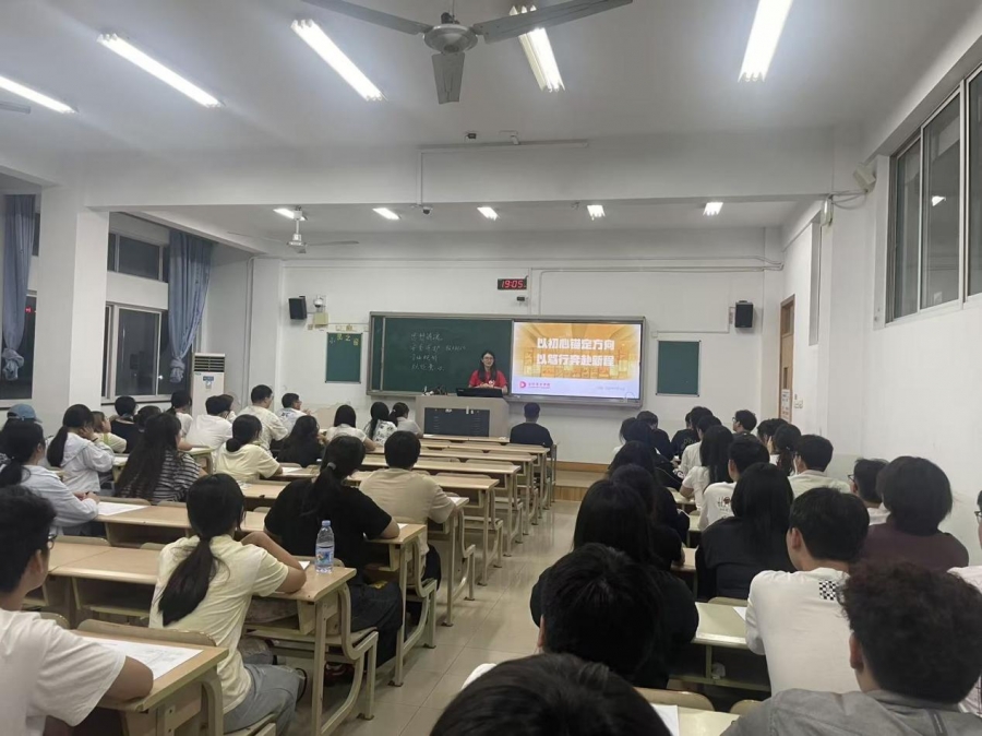 成长引领环节,各新生班级在自习教室召开 “新生第一课” 主题班会。班主任结合班级实际,围绕新生关注的重点事宜细致讲解:从宿舍安全、信息平台使用等基础事务,到课程安排、学分要求、奖学金评定等学业制度,再到校园活动参与、心理健康调适等成长建议,确保新生清晰掌握大学学习生活 “指南手册”。